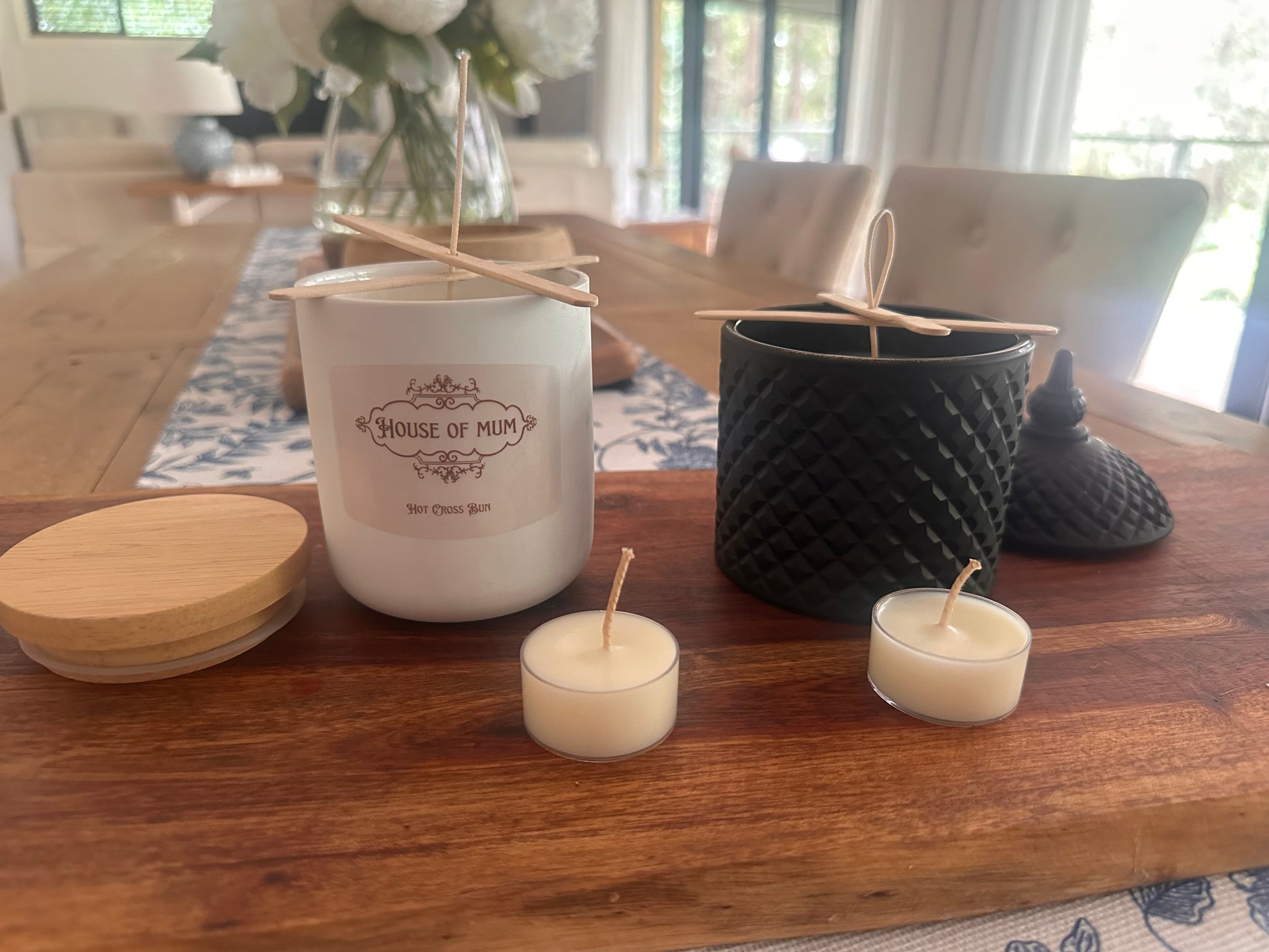 Desert inspired candle collection, butterscotch pudding, salted caramel, hot Cross bun, sugar cookies.